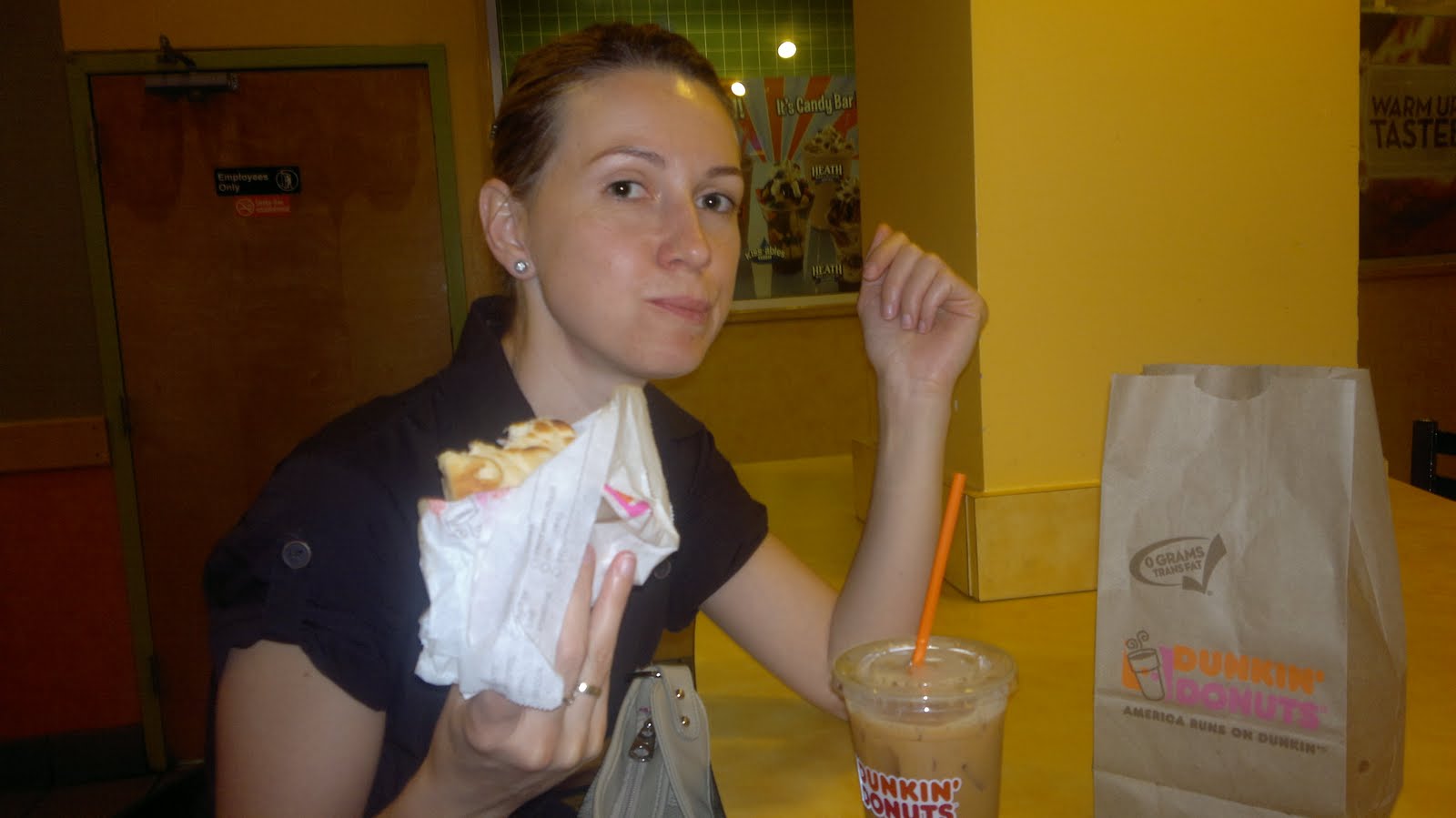 Reggelire betértünk egy Dunkin' Donuts-ba fánkért, flatbread-ért és egy nagy pohár jeges kávéért.